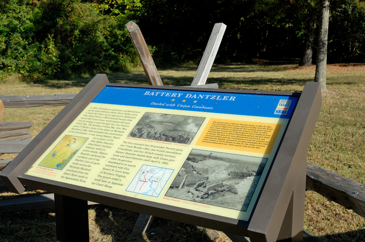 Battery Dantzler was constructed at the northern end of the Howlett Line in May 1864 to stop Union naval forces from advancing up the James River to Richmond. Confederate forces * engaged in several artillery duels with Union ironclads. Union troops tried to evade the battery by digging Dutch Gap Canal, which today serves as the main river route to Richmond.