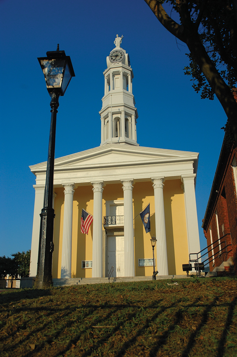 The Petersburg Courthouse, built between 1837 and 1839, was the official Confederate headquarters during the Siege of Petersburg. Soldiers from both sides could see the courthouse clock from the trenches and they set their timepieces by it. The clock tower was a favorite target of Union artillerists, who poured an estimated 20,000 shells into the city. When Petersburg fell on April 3, 1865 a Union flag waved above it. President Lincoln passed by the Courthouse on April 7, 1865 en route to Centre Hill. The Courthouse is still used today for circuit court.